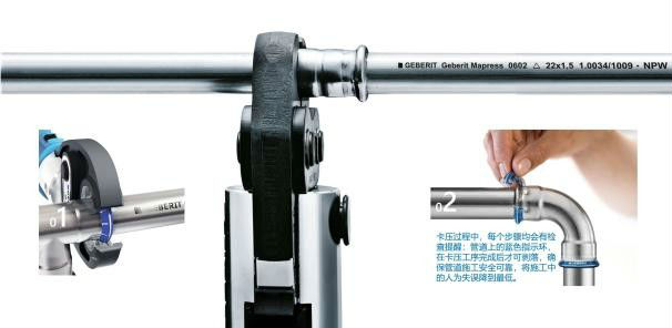吉博力Mapress不锈钢单卡压衔接技能,1次卡压,即可彻底贴合,完成100%密封。